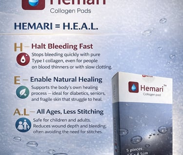 Hemari collagen pad effectively helps wounds stop bleeding, heal better, and close naturally — for every family, every age.
